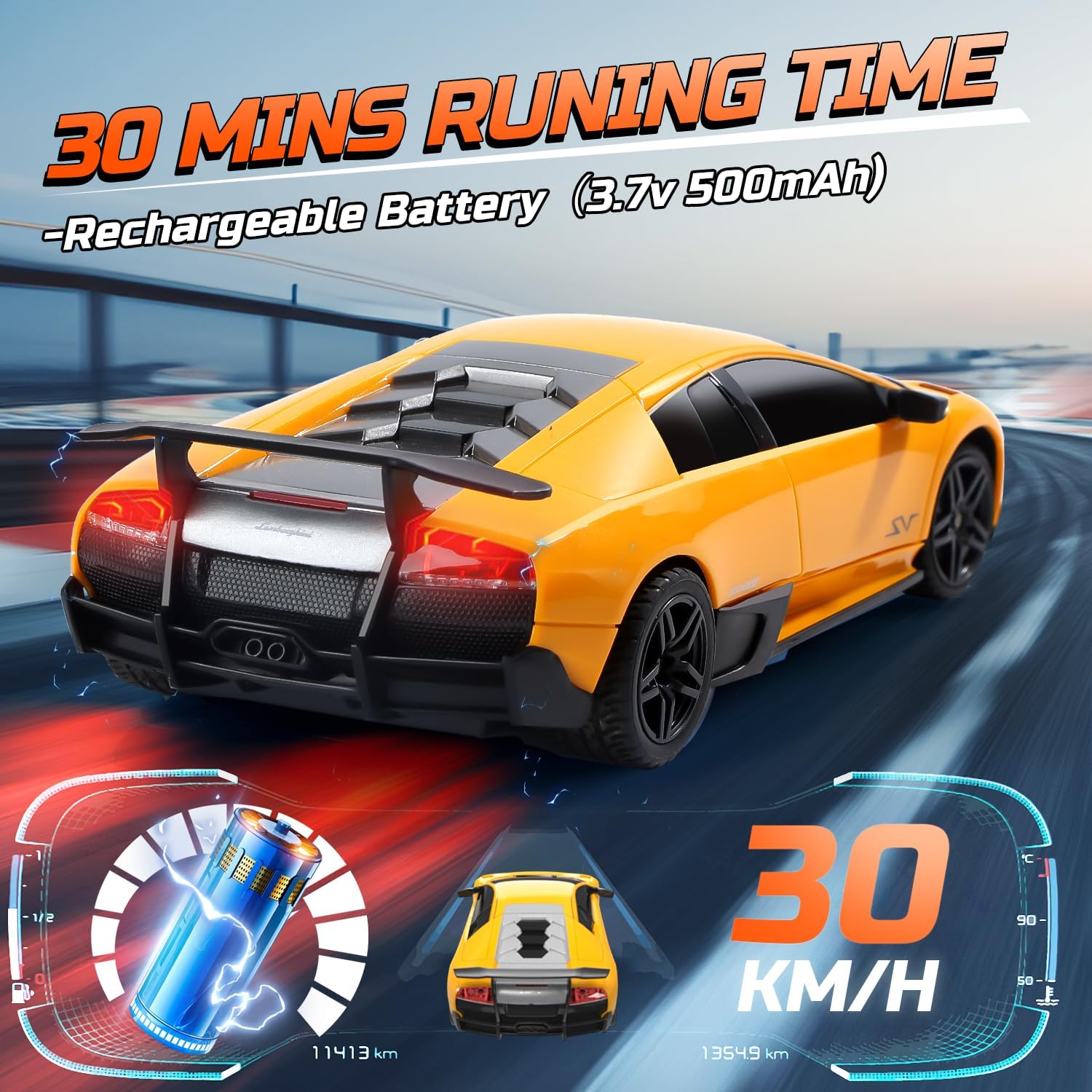 - Realistic Racing Experience:This yellow rc race car features a true-to-life design that brings the excitement of racing right into your home. Equipped with front headlights and brake lights, it adds a layer of authenticity, making playtime feel like a real race!