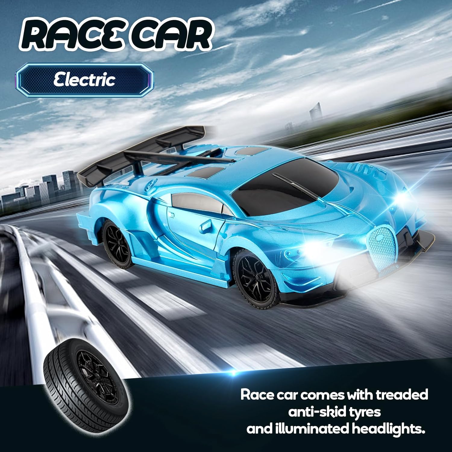 - Kids Racing Game – Kids love any racing games! Cool blue with high speed, the car can win during all racing games. Kids can improve their hands on ability and sensory development. The car just like a pet for your kids, be friends and accompany them around.